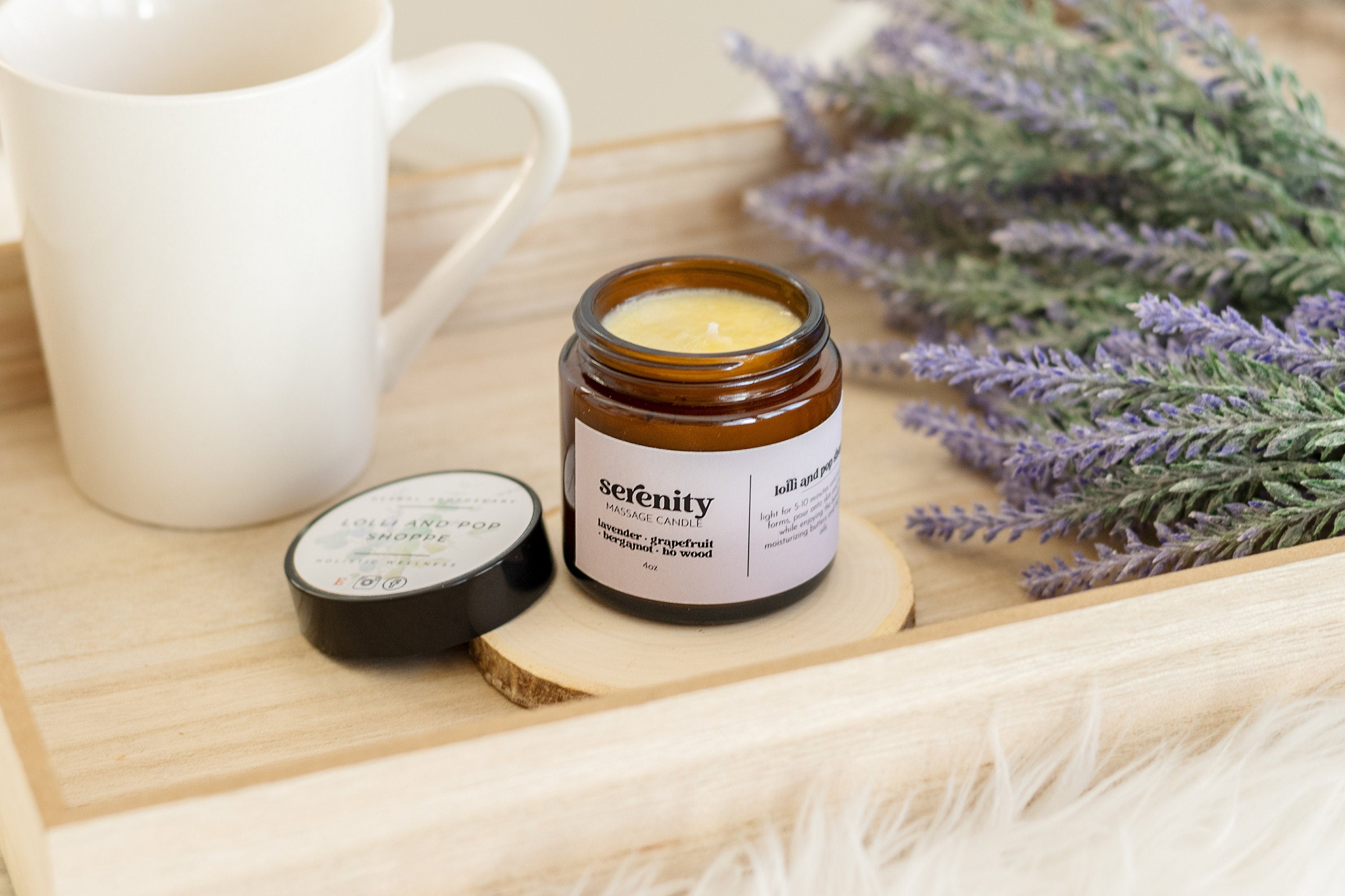 Immerse yourself in the unique and tranquil experience provided by our massage candles, where the gentle flicker of candlelight meets the profound healing qualities of essential oils. These candles are designed not just to illuminate your space but to transform it into a haven of relaxation and wellness. As each candle burns, it transitions into a pool of warm, rich massage oil, teeming with the therapeutic goodness of carefully selected natural ingredients. This luxurious oil is designed to be applied directly to your skin, merging the comfort of warmth, the allure of fragrance, and the benefits of a soothing touch into one holistic experience.