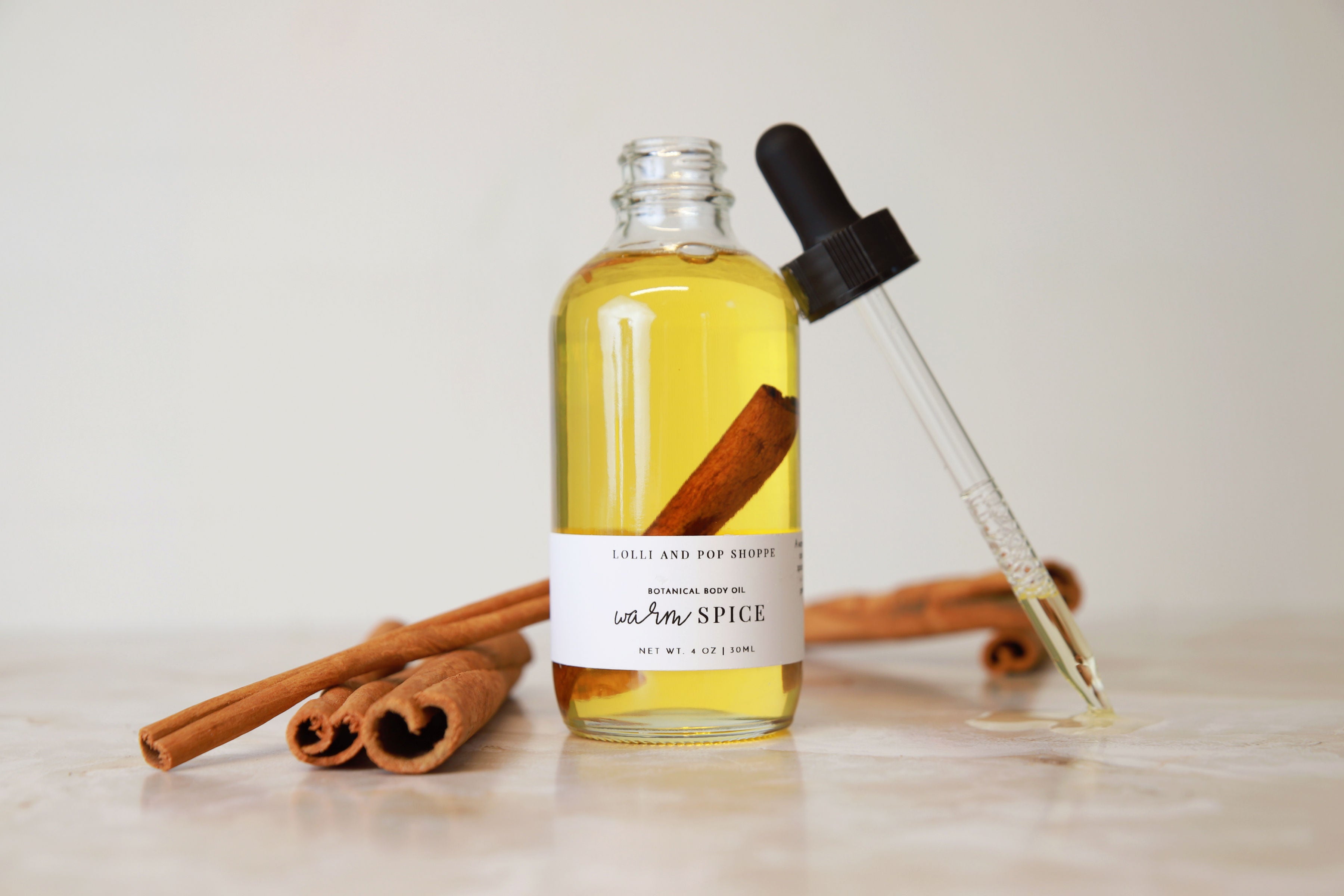 Warm Spice: Indulge in a comforting massage with Warm Spice Body Oil by warming a small amount between your palms and applying it to tense muscles and joints. After your massage, add a few drops to your bath for a warming and aromatic soak. The blend of sesame oil, ginger, black pepper, cinnamon, cardamom, clove, patchouli, and myrrh will ease tension and leave your skin feeling nourished and revitalized.