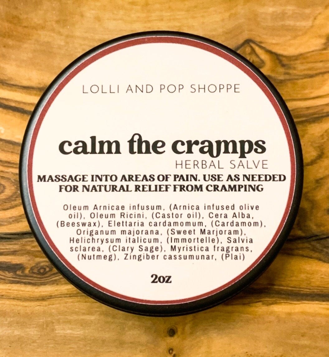 Find comfort during your cycle with our Calm the Cramps Salve, a soothing blend of botanicals crafted to support ease and relaxation when you need it most.
