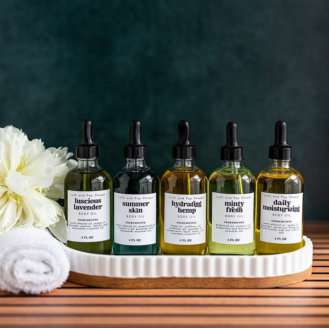 Formulated with a harmonious blend of sweet almond oil, jojoba oil, and olive oil, our body oil deeply nourishes the skin, leaving it soft, supple, and radiant. The emollient properties of sweet almond oil lock in moisture, while jojoba oil helps balance oil production and olive oil protects and soothes sensitive skin.