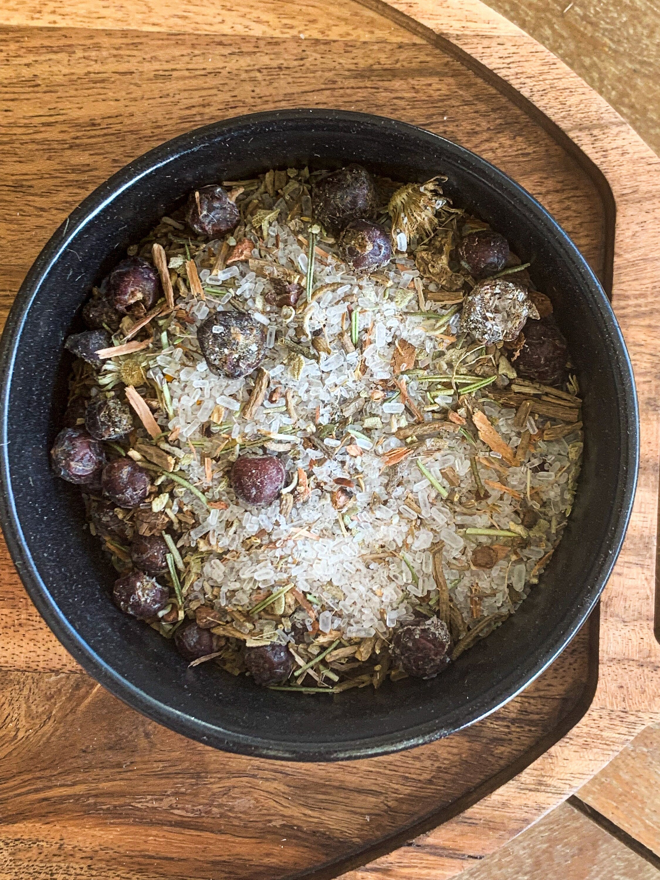 Stir and Soak: Before stepping in, gently stir the water to ensure the salts and ingredients are well mixed. Then, immerse yourself in the tub, allowing your body to soak in the beneficial properties of the salts and botanicals.