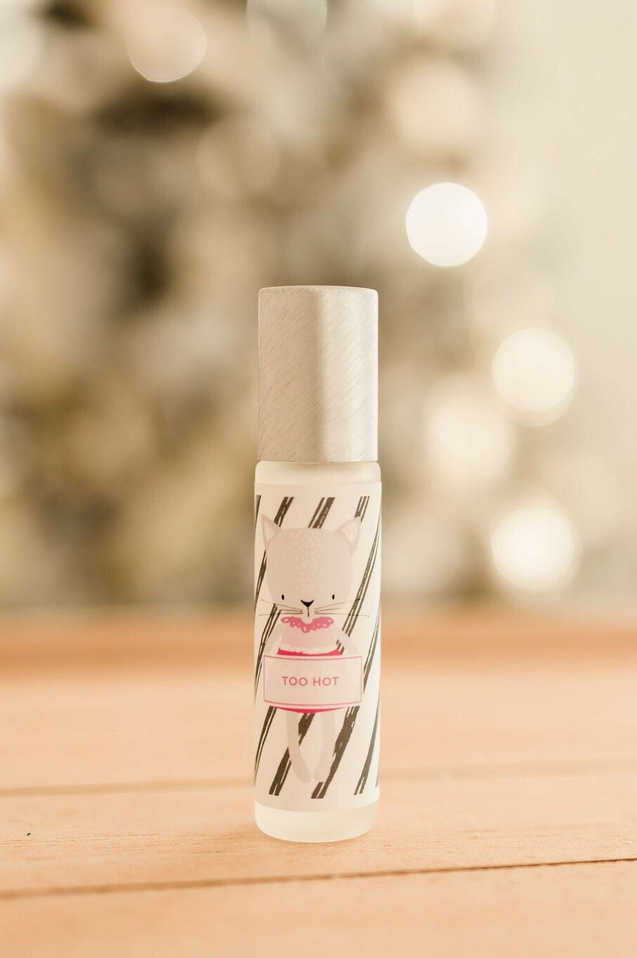 Roll onto the bottoms of feet, back of the neck, or temples to help cool down feverish skin.