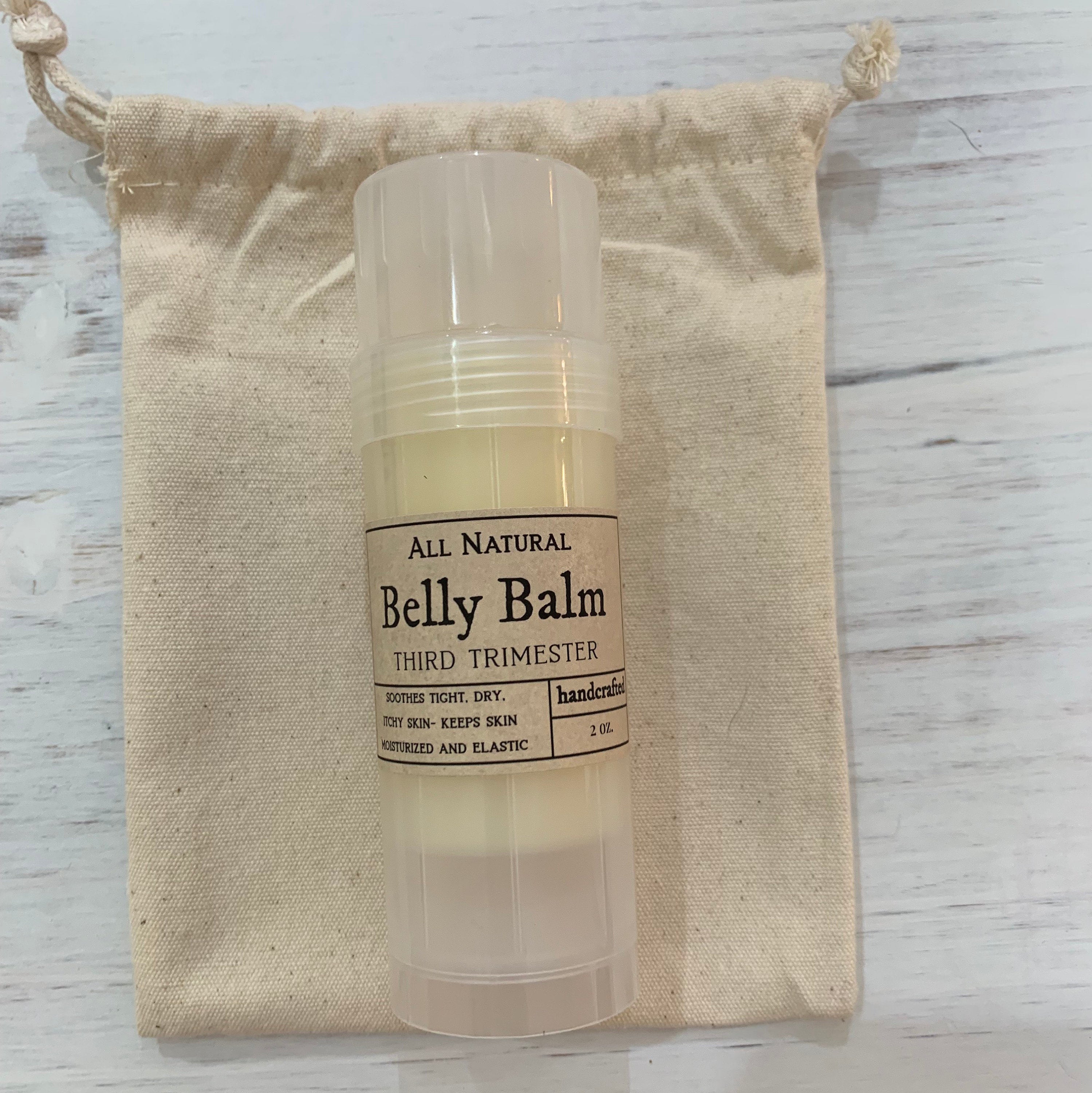 Third Trimester Belly Balm: For the final stretch, the balm is infused with sandalwood, lavender, and chamomile essential oils. Sandalwood is selected for its grounding and calming properties, which can be particularly beneficial as you prepare for childbirth. Lavender continues to provide relaxation, and chamomile is renowned for its soothing and sleep-promoting qualities, aiding in restful nights before the baby arrives.